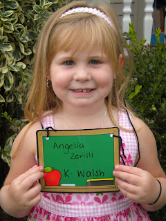 Angelia's 1st day went well! :) EVERYONE was up EARLY ... everyone up by 7:45 a.m. is a rarity in our house. But everyone cooperated and were up & out on time to see Angelia off on her 1st day of Kindergarten! :) We all walked Angelia to school and even Doris (our next door neighbor) came along for the short trip... she was as excited as we were and reminsced about the days she took the same route to take her sons to school when they were little.